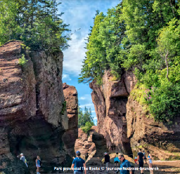 AM : Visite du parc provincial The Rocks à Hopewell Cape, dans la baie de Fundy. À marée basse, possibilité de marcher sur le fond marin et d’admirer les magnifiques rochers en forme de « pots de fleurs » tandis qu’à marée haute, possibilité de faire l’observation de l’une des plus hautes marées au monde. PM : Visite du Pays de la Sagouine et découverte de l’univers de l’auteure Antonine Maillet. Repas inclus:PD/D/S